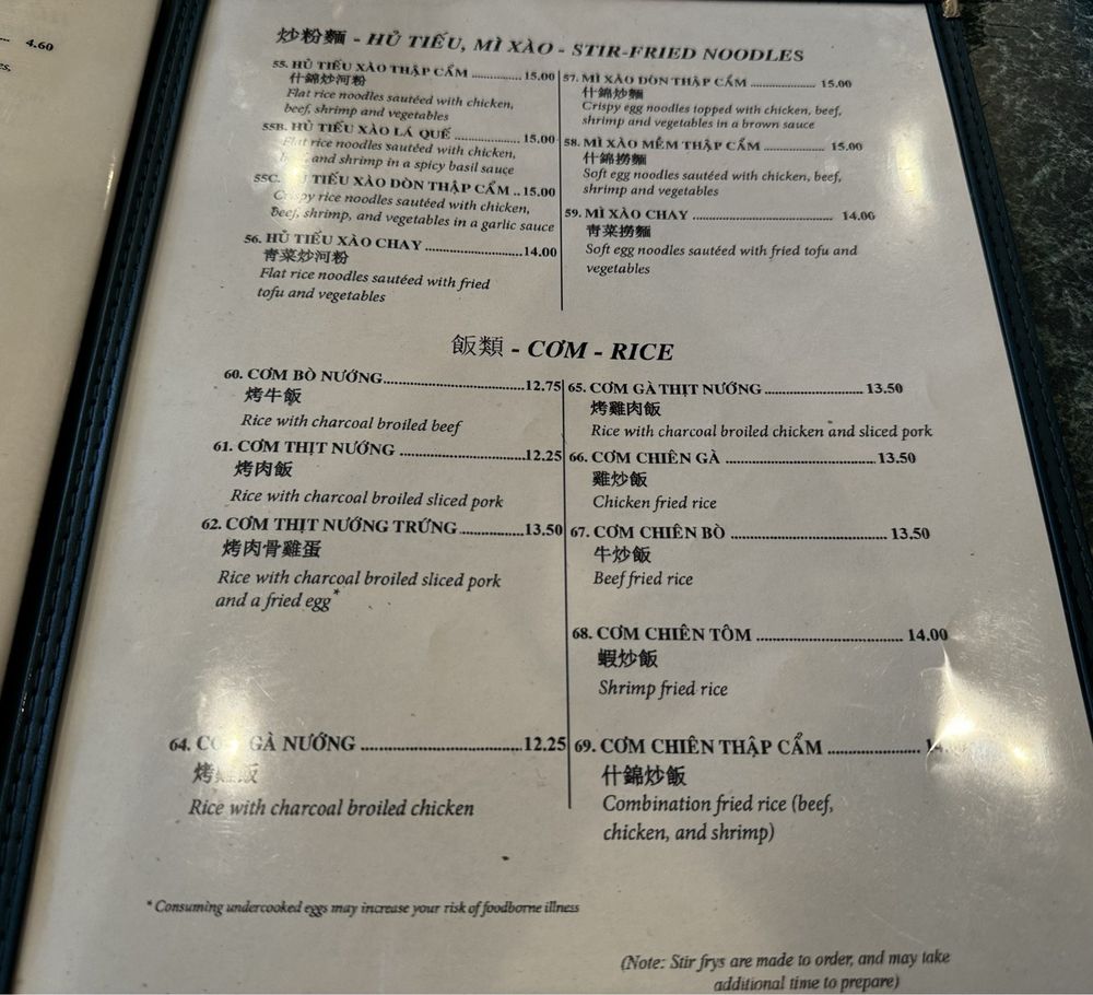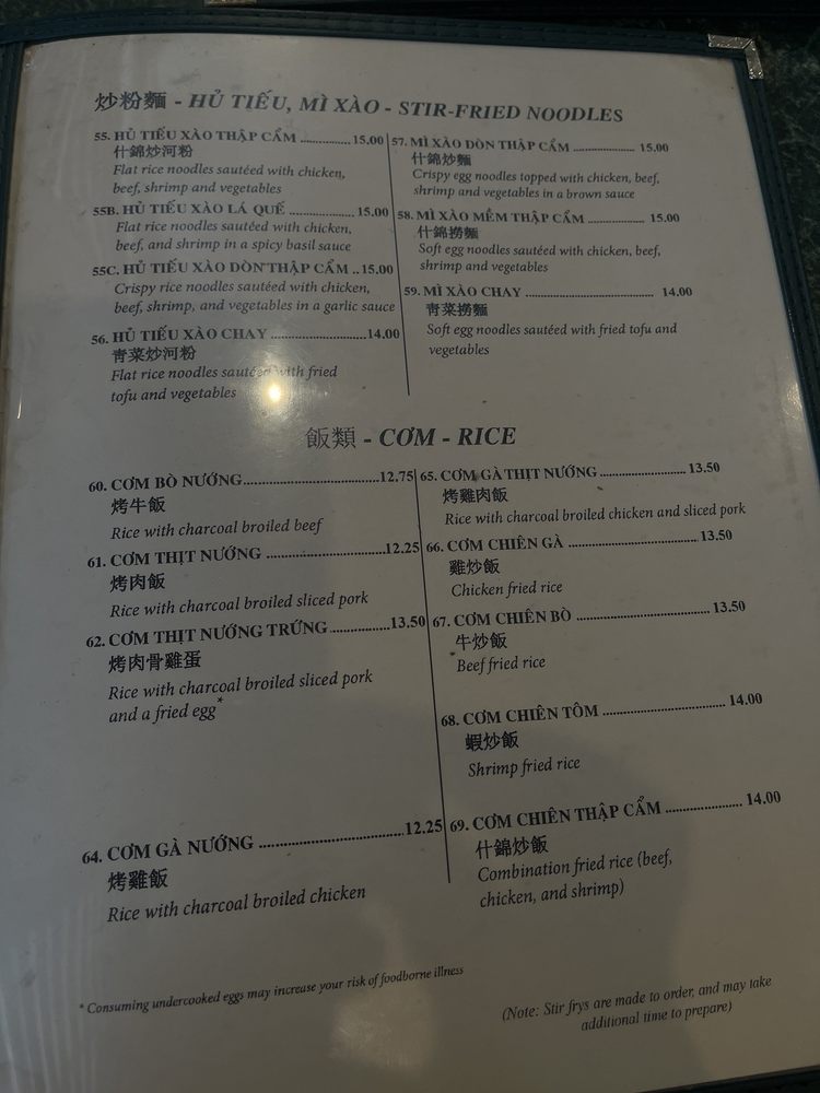 At Tan My, located in Austin, TX, you can indulge in authentic Vietnamese soups and dishes with a wide range of options to satisfy your cravings. Specializing in delicious soups like Bun Bo Hue, Hu Tieu Dai Thap Cam, and Hu Tieu Mi Thap Cam, Tan My's menu offers a unique experience for soup lovers. For those craving fried rice, their Com Chien Bo, Com Chien Ga, Com Chien Thap Cam, and Com Chien Tom will surely hit the spot. The Hu Tieu, Mi Xao dishes like Hu Tieu Xao Chay and Hu Tieu Xao Don Thap Cam provide a flavorful stir-fry option for vegetarians. The restaurant's attention to detail in providing vegan options, gluten-free choices, and accommodating special dietary needs make Tan My a must-visit place for lovers of Vietnamese cuisine. With friendly service, a casual atmosphere, and a variety of amenities including outdoor seating and delivery options, Tan My is suitable for groups, families, and solo diners alike.